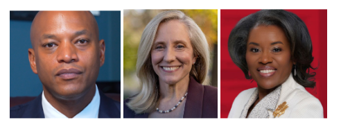 Left to right: Governor Wes Moore, Abigail Spanberger, Winsome Earl-Sears