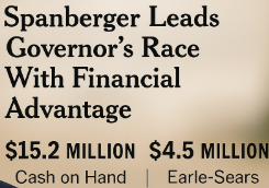 - Abigail Spanberger leads Virginia’s open gubernatorial race with a large fundraising edge.