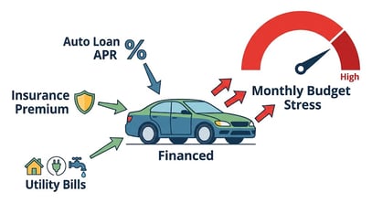 Campaign Now (Gemini). Fixed monthly auto costs stacking against household budget