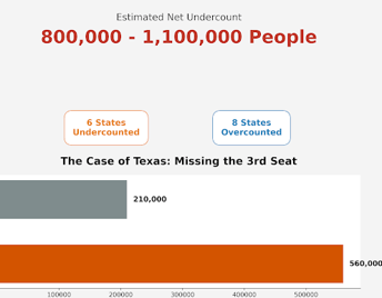 Context matters. The 2020 Census was estimated to have a net undercount between 800,000 and 1,100,000 people, with 6 states undercounted and 8 overcounted. Texas, for example, gained 2 seats but was statistically close to gaining 3, needing approximately 210,000 additional residents to reach that threshold. Post Enumeration Survey data estimated Texas had been undercounted by roughly 560,000 people.