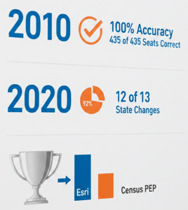 Esri’s track record lends weight to its current projections. In the 2010 Census cycle, Esri achieved 100% accuracy in forecasting all 435 seat allocations. In 2020, it correctly predicted 12 of 13 state changes, outperforming the Census Bureau’s Population Estimates Program in comparative projection accuracy.