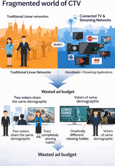 The rush to CTV was driven by a clear and correct diagnosis: the audience for linear television is shrinking and aging, and campaigns needed to find voters, particularly younger ones, on the streaming platforms where they now spend their evenings.
