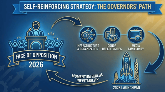 In this environment, governors see 2028 not as a long-shot breakthrough but as a structural opening. The job they already do increasingly resembles the one they want, and the pathway to national leadership no longer runs exclusively through Washington.