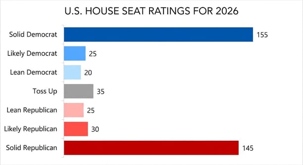 [Image]: Campaign Now (Gemini), data from USPollingData — 2026 competitive seat breakdown by category
