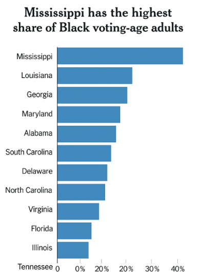 Democrats may need to make substantial investments in the South, a strategy they have historically avoided, if they wish to maintain their national political viability. Mississippi, Alabama, and Louisiana are often dismissed as unwinnable, yet all show signs of change. Mississippi has the highest share of Black voting-age adults in the nation.