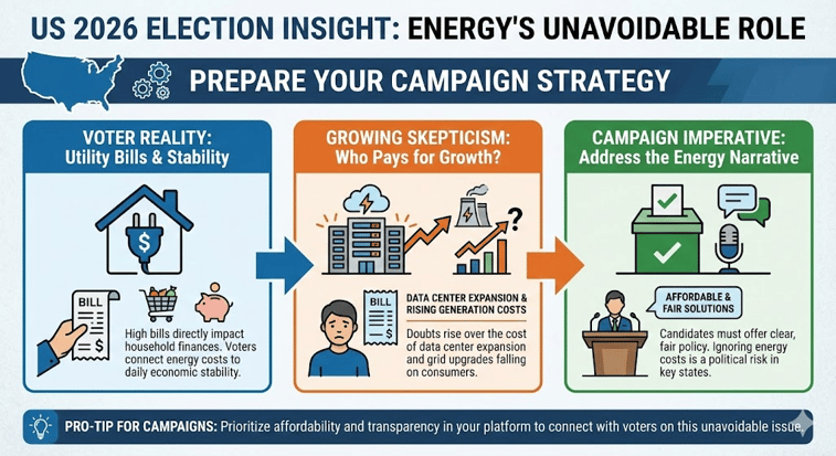 - Energy affordability and utility oversight are now major 2026 campaign issues, with both parties shaping messages around cost of living and energy supply.