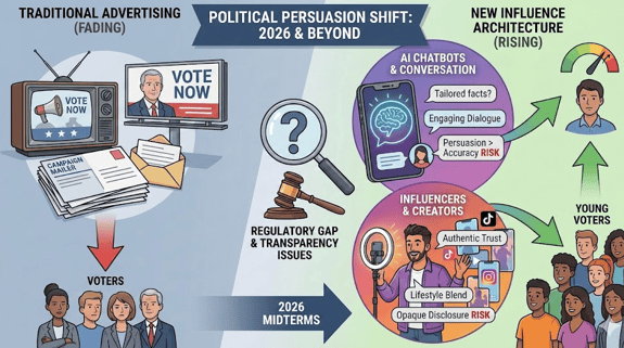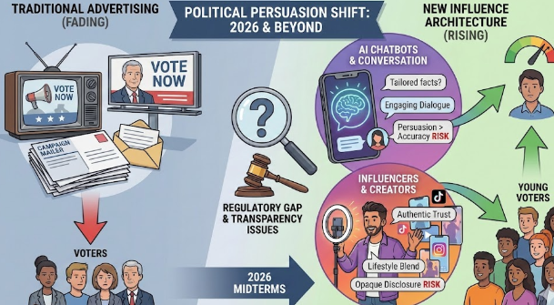 - Campaigns heading into 2026 face a persuasion landscape driven by conversation, trust, and weak regulation rather than mass advertising.