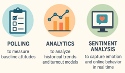 - Campaigns now rely on polling, analytics, and sentiment data to see the full picture.