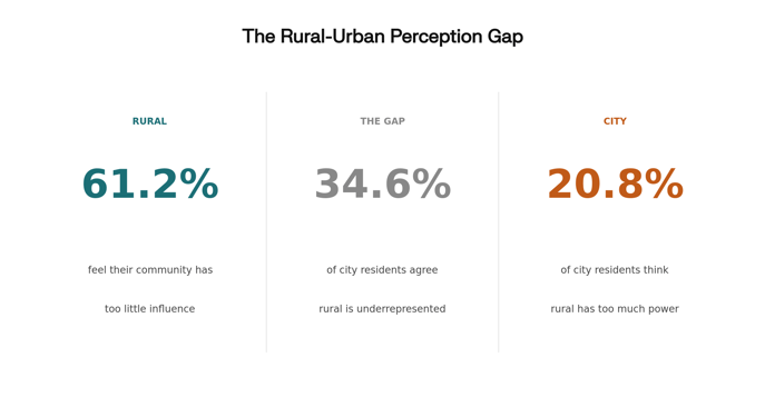 The rural-urban “influence gap” is as much perception as power (Data from Rowland, Duff, & Lee analysis of 2020 ANES; Chart created by Campaign Now with Gemini).