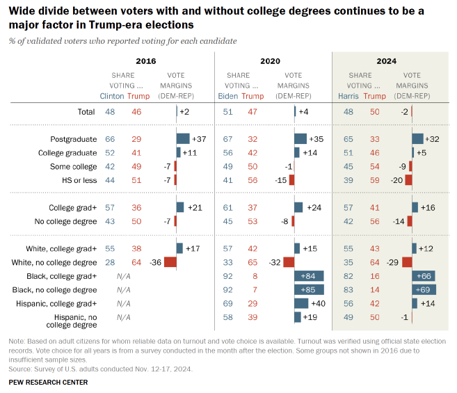 Across pivot counties, educational attainment remains one of the strongest predictors of political behavior. Voters without a four year degree make up the backbone of the electorate. This does not mean they are disengaged from policy or incapable of complex analysis. It means their reference points are shaped by work, family, and community rather than professional networks or academic institutions.