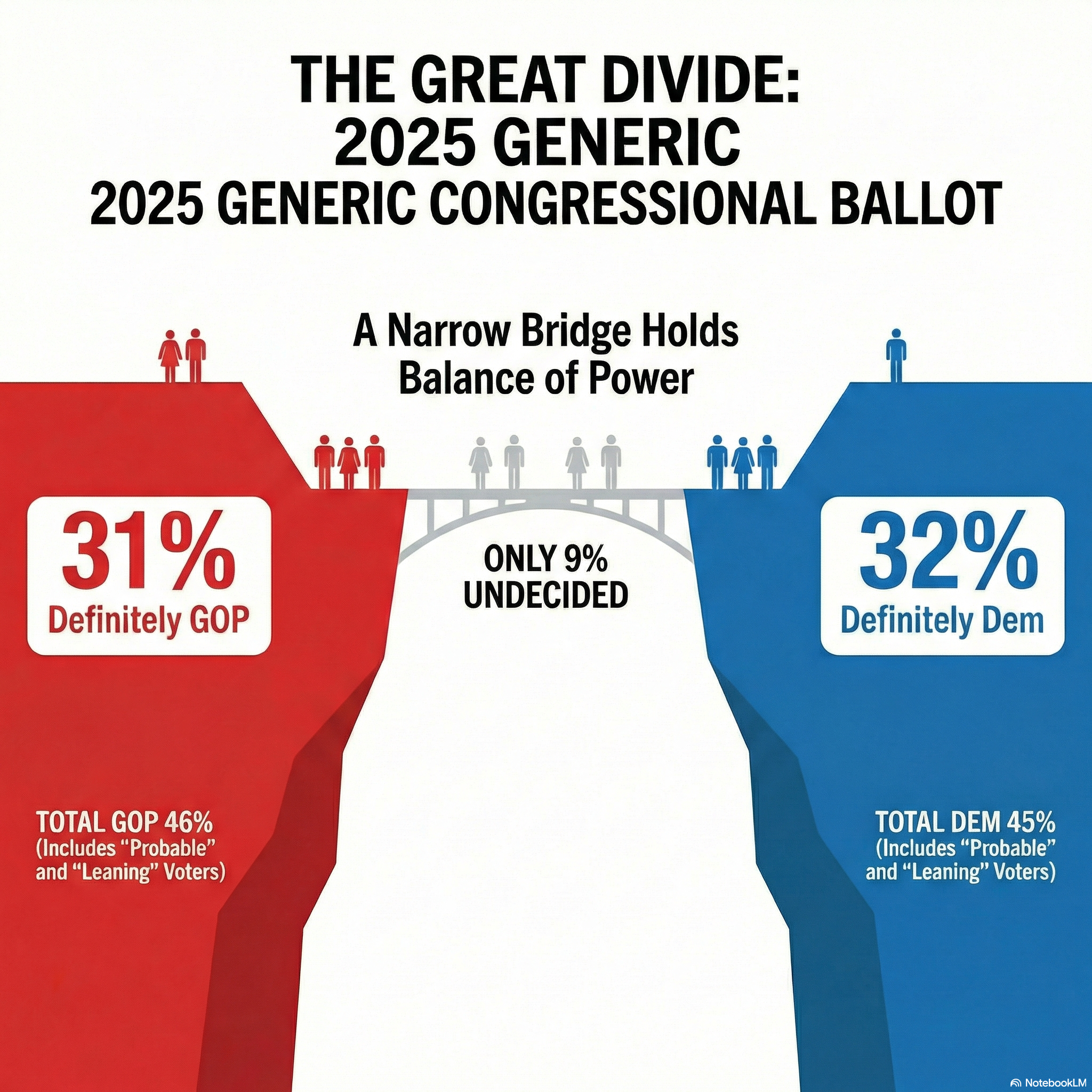 If this pattern holds, the near-term story is not a wave. It is a fight for marginal voters in a high-anxiety economy, where small shifts in coalition groups and persuasion segments can move the trendline quickly.