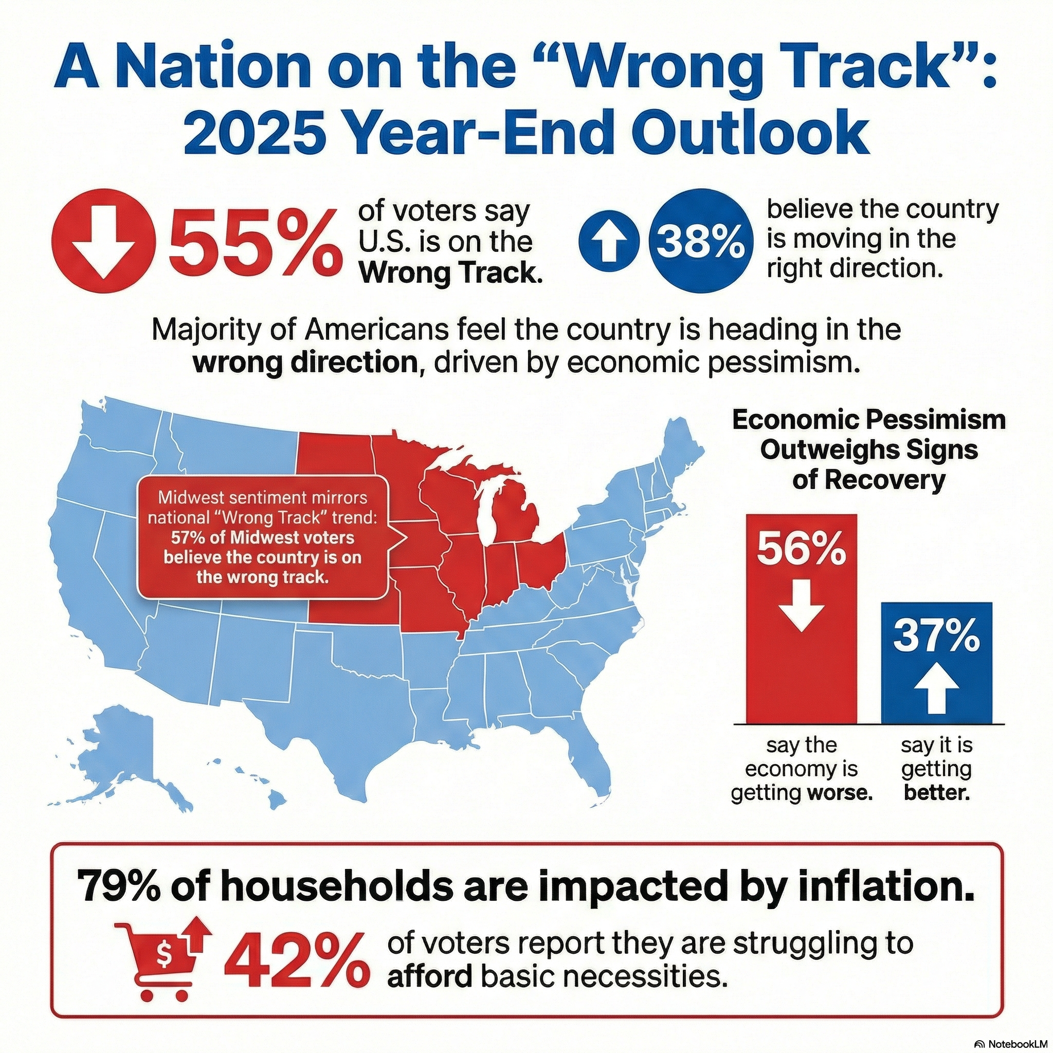 Economic Pessimism Drives 'Wrong Track' Outlook, based on McLaughlin Poll figures. Visual created by Campaign Now using Google Gemini.