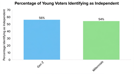 - This surge is largely driven by younger voters, with 56% of Gen Z and 54% of Millennials now identifying as independents.