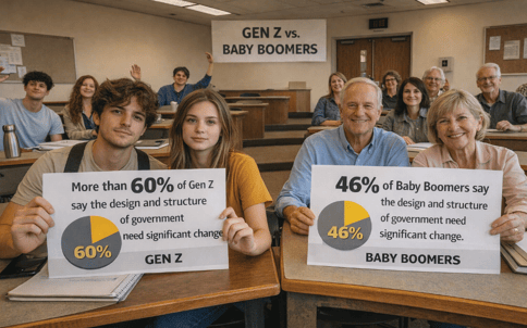 This shift is not a passing phase of youthful rebellion. It reflects a structural break in how younger Americans view democratic institutions and political parties. A nationally representative mid-2025 survey of 4,500 Americans conducted by the SNF Agora Institute at Johns Hopkins University found that more than 60% of Gen Z respondents believe the design and structure of government need significant change regardless of who is elected. Among Baby Boomers, that number falls to 46%, underscoring a measurable generational confidence gap.
