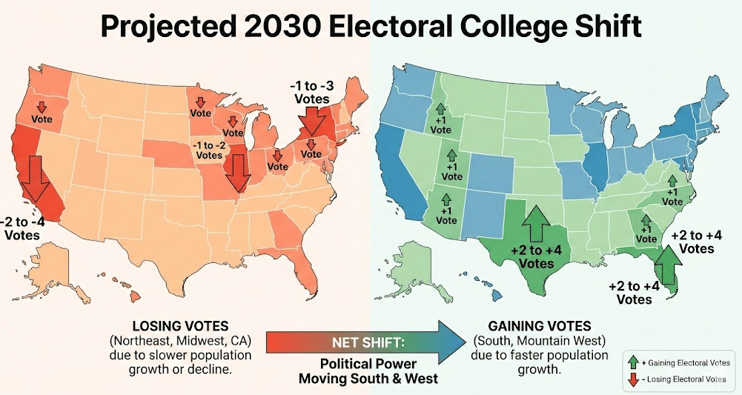 This does not guarantee a permanent advantage for either party, but it does raise the cost of standing still. As redistricting analysts have noted, coalitions that delivered victories in the 2010s and early 2020s may no longer be sufficient in a map where population gravity continues to tilt southward. After 2030, winning the presidency will depend less on defending legacy strongholds and more on adapting to where voters actually live.