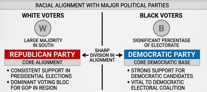 One of the most significant constraints on political elasticity is racial and partisan polarization. In large portions of the American South, voting coalitions are sharply defined, with white voters largely aligning with Republicans and Black voters forming a core Democratic base.