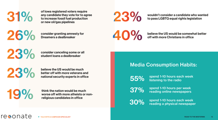 “In Iowa, 31% of registered primary voters require any candidate they vote for to agree to increase fossil fuel production or new oil/gas pipelines.” – Resonate – Top 10 Primaries to Watch