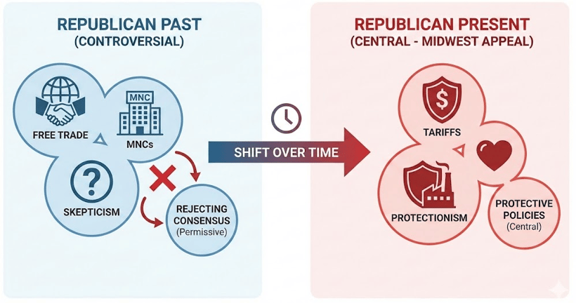 This shift mirrors earlier populist pivots within the party. Tariffs, skepticism toward free trade, and hostility toward multinational corporations were once controversial within Republican ranks. Over time, they became central to the party’s appeal in the Midwest. Each move involved rejecting consensus economic thinking in favor of policies that felt protective rather than permissive.