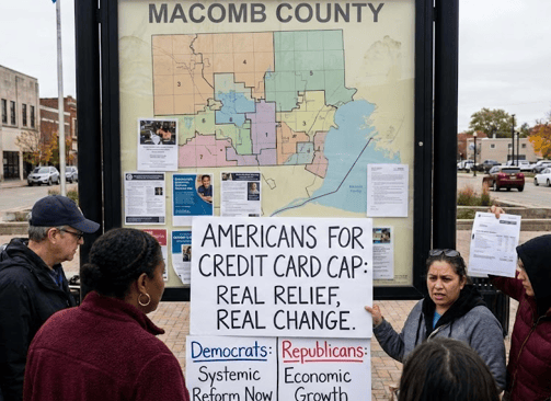 In pivot counties like Macomb County, Michigan, where electoral outcomes have swung between parties over the past decade, this message resonates precisely because it mirrors lived experience. These voters have heard Democrats emphasize systemic reform and Republicans emphasize economic growth. Both messages can feel distant. The credit card cap offers something more tangible. It addresses a pain point that voters encounter every month when statements arrive and minimum payments barely dent principal balances.