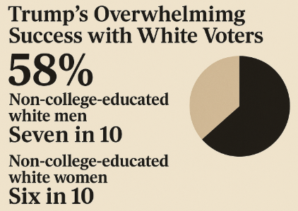 These voters, often part of the "disaffected populist" or "cultural backlash" demographics, are consistently under-polled. Trump's overwhelming success with white voters (58%), especially non-college-educated white men (seven in 10) and non-college-educated white women (six in 10), confirmed that this hidden army of supporters surged at the ballot box in a way forecasters never captured.