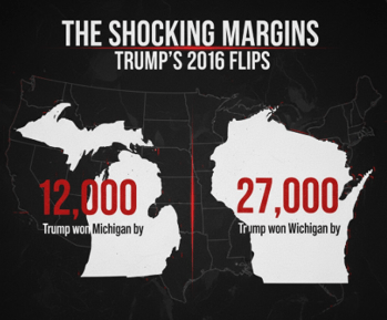 The 2016 election was decided by a margin. Trump's victory was built on flipping historically Democratic states by shockingly small vote counts. He won Michigan by just 12,000 votes and Wisconsin by only 27,000.