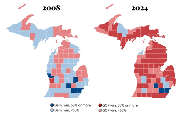 Michigan is becoming a clear example of the challenges facing both parties in 2026. The state’s political identity, once shaped by the auto industry and a unified labor base, has splintered into a mix of suburban moderates, union independents, and conservative small towns.