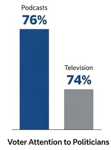 Voters pay more attention to podcasts than TV. Created by Campaign Now with Gemini.Data from Campaigns & Elections