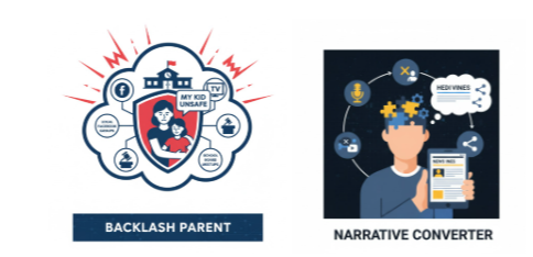 - Cultural Contrarians and Backlash Parents are activated by urgent, emotional triggers on platforms like podcasts and local Facebook groups.