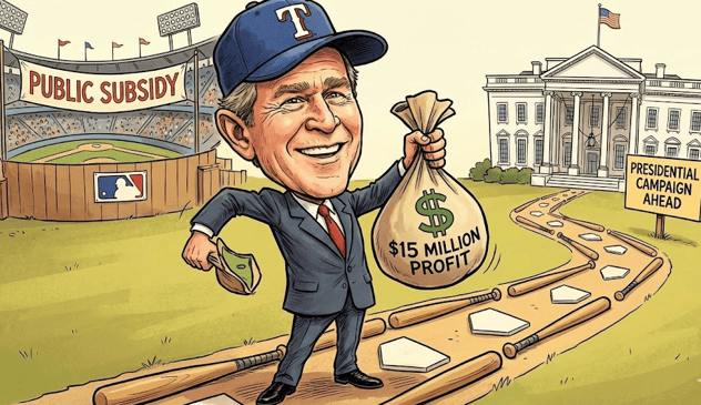 George W. Bush’s path from a $605,028 investment in the Texas Rangers to more than $15 million in personal profit illustrates how deeply sports ownership, public subsidy, and political viability can intersect. That financial windfall gave Bush the independence to launch a presidential campaign without traditional donor dependence.