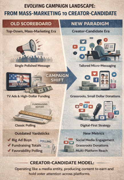 The obsolescence of the old scoreboard is a direct result of a fundamental shift in campaign strategy. The top-down, mass-marketing era, where a campaign crafted a single polished message and broadcast it to a wide audience, is over. It has been replaced by the creator-candidate era, where the candidate must operate like a media entity, constantly producing a stream of content to earn and hold voter attention across a multitude of platforms.