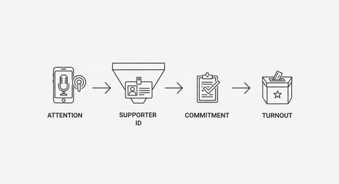 Attention-to-turnout funnel. Created by Campaign Now with Gemini.