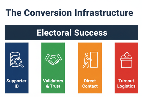 The appeal of digital-first politics is obvious: it’s fast, cheaper than broadcast at scale, and it delivers instant feedback in the form of engagement. But the 2024 primary made a central point unavoidable. Algorithms can build a brand. They cannot, by themselves, build the trust networks, identification systems, and turnout mechanics that win elections.