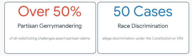 According to Brennan Center analysis, more than half of all redistricting challenges this decade assert partisan gerrymandering claims, and fully 50 cases allege race discrimination under constitutional or Voting Rights Act theories. For incumbents, the risk is not abstract.