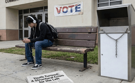 Youth turnout is no longer a messaging challenge for the left. It is a structural vulnerability with cascading consequences across the progressive coalition. Young voters are not disengaging ideologically, but their declining reliability weakens margins in swing districts, reduces volunteer capacity, and reshapes primaries toward older and more risk averse electorates. That shift advantages institutionally backed candidates over grassroots challengers and forces Democrats in general elections to overperform with older voters simply to remain competitive.